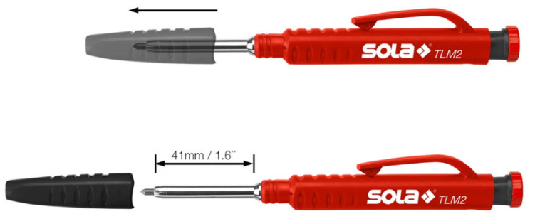Značkovač do hlbokých otvorov TLM sa u mnohých remeselníkov stal obľúbenou pomôckou. Praktickou, mechanickou ceruzkou TLM je možné rýchlo značkovať vŕtané otvory do hĺbky až 45 mm. Vymeniteľné tuhy rôznych farieb sa dajú pomocou orezávatka integrovaného v rukoväti kedykoľvek naostriť. Značkovač do hlbokých otvorov TLM sa vôjde do každého kufríka na náradie a vďaka robustnej upevňovacej spone je možné ho pripnúť na nohavice alebo náprsné vrecká.