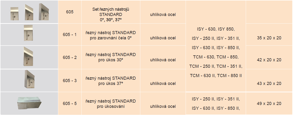Sada troch rezných nožov vhodných pre uhlíkovú oceľ. Určené pre: ISY-630, ISY-850, ISY-250II, ISY-351II, ISY-630II, ISY-850II, TCM - 630, TCM-850, TCM-250II, TCM-351II, TCM-630II, TCM-850II.