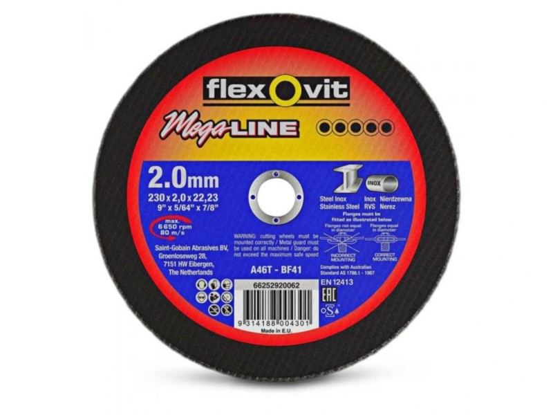 Objavte prémiový rezný kotúč Flexovit INOX, navrhnutý špeciálne pre náročných používateľov uhlových brúsok. Tento kotúč, pochádzajúci od renomovanej holandskej značky Flexovit, je ideálnou voľbou pre precízne a efektívne rezanie všetkých typov nerezových materiálov. Vďaka svojmu priemeru a štandardnému vnútornému otvoru 22,3 mm je kompatibilný s väčšinou uhlových brúsok dostupných na trhu, zabezpečujúc univerzálne použitie.