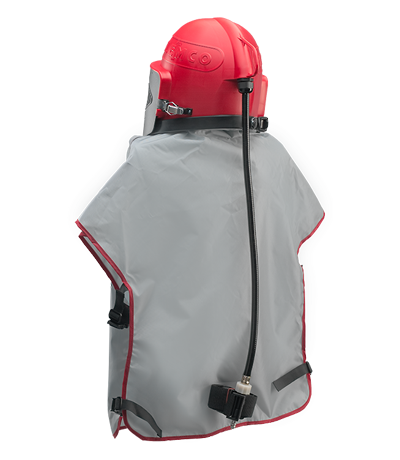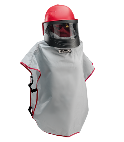 Integrovaný plášť, ktorý je pevne pripevnený k tryskacej prilbe, poskytuje dodatočnú ochranu proti odrazu média a chráni tryskací oblek pod ním pred opotrebením.