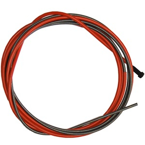 Oceľový vodiaci bowden červený, izolovaný, pre vedenie oceľového zváracieho drôtu cez vodou chladený MIG/MAG horák, s koncovkou, od Abicor Binzel. Je určený pre drôt priemeru 1,0 - 1,2 mm a horáky dĺžky 4 m. Dĺžka bowdenu je 4,5 m, hrúbka špirály 2,0 mm a vonkajší priemer je 4,5 mm.
