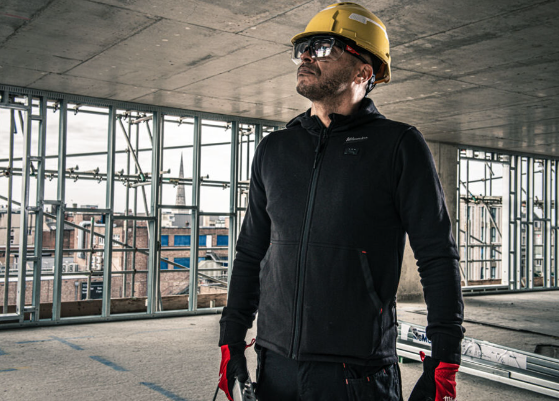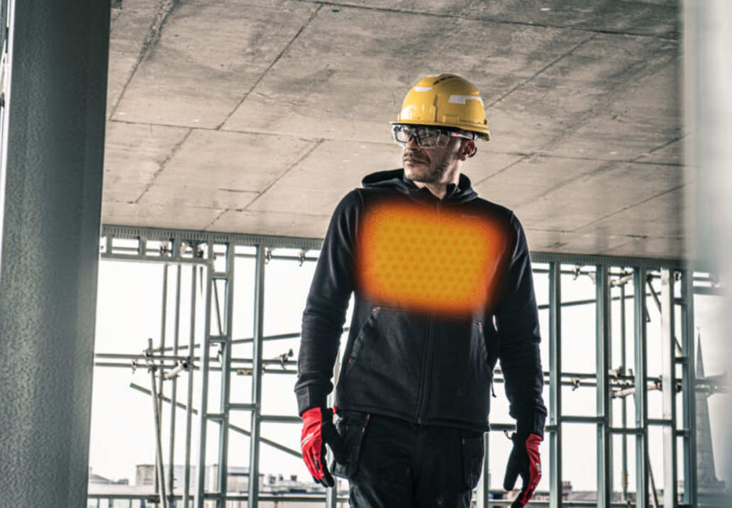 - Odolná vyhrievaná mikina vyrobená z odolného bavlneného (56 %) exteriéru s odolnými zosilnenými vreckami na náradie a polyesterovou flísovou (44 %) podšívkou, aby vydržala drsné vonkajšie podmienky.