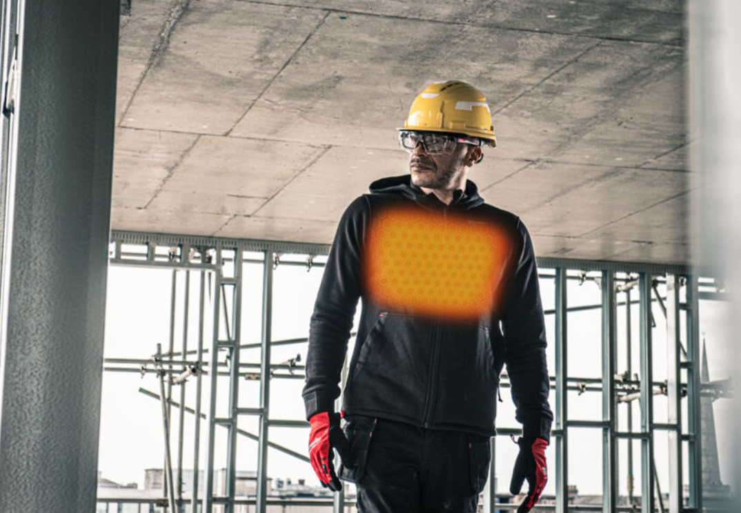 - Odolná vyhrievaná mikina vyrobená z odolného bavlneného (56 %) exteriéru s odolnými zosilnenými vreckami na náradie a polyesterovou flísovou (44 %) podšívkou, aby vydržala drsné vonkajšie podmienky.